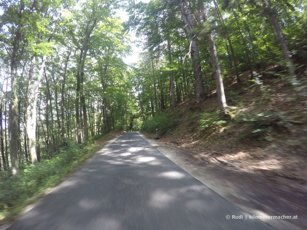 Ich rolle einmal rüber Richtung Mattersburg. Dann links auf die „alte“ B50, denn der Wind kommt von Süden, also wenn ich da runter fahre – Richtung Oberpullendorf – habe ich auf der Heimfahrt (theoretisch/hoffentlich) Rückenwind. Nach nicht ganz 30 Kilometern zum aufwärmen kommt die erste längere Steigung – der Sieggrabener Sattel. Nach der Linkskehre geht es eigentlich ganz locker hinauf. Und dann lange, lange bergab. In Tschurndorf wechsle ich von der B50 auf den Radweg und es geht schön entlang des Sieggrabenbaches und den Weiden mit Kühen, Emus (?), Enten, Ziegen, Hühnern… weiter bis Weppersdorf.